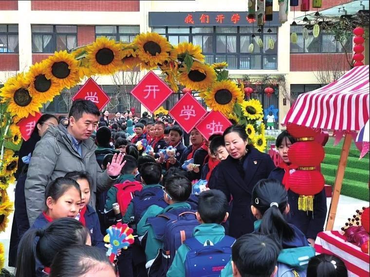 暖心的击掌互动顶端新闻·河南商报记者 刘泽林/文 受访者供图2月14日,郑州市中小学花式迎开学。寂静了一个寒假的校园又恢复了往日的生机与活力,为了帮助学生们尽快调整状态,融入新学期的学习和生活,各学校精心准备了形式多样的开学仪式和活动。 郑州市金水区新柳路小学:“小柳芽”开启全新学习旅程2月14日,郑州市金水区新柳路小学迎来了2024—2025学年第二学期开学典礼。沉寂了一个寒假的校园,瞬间被“小柳芽”们的欢声笑语填满,处处洋溢着蓬勃朝气,他们怀揣着对新学期的美好憧憬,踏入校园,开启了全新的学习旅程。校园被精心布置一番,五彩斑斓的气球随风轻舞,寓意美好的背景墙格外醒目,浓浓的开学氛围扑面而来,让孩子们对新学期充满了无限遐想。 郑州市第五十八中学:把“龙”舞起来2月14日上午,郑州市第五十八中学本部和智美校区同步举行了新学期的开学典礼。师生齐聚一堂,共同开启新的学习旅程。校长李松涛、党委书记徐长广等校领导出席了本次开学典礼。学校所在地祥营村在家校社共育工作中给予学校大力支持,村里传承数百年的狮鼓舞先后被列为区、市、省三级非物质文化遗产。此次开学典礼,村民给师生带来了精彩的舞龙舞狮表演。郑州高新区外国语小学:AI科技与哪吒文化巧妙结合开启奇幻新学期开学第一天,郑州高新区外国语小学用AI科技与哪吒文化的巧妙结合,为孩子们开启了一个充满奇幻与智慧的新学期。在这里,传统与现代交融,科技与梦想同行,孩子们将在这片沃土上茁壮成长,书写属于自己的出彩篇章。郑州市惠济区香山小学:不“椒”不躁“蔬菜寄语角”很有趣2月14日,郑州市惠济区香山小学举行了一系列妙趣横生的开学活动。学校延续古代学堂“击鼓明志”的传统,在校门口设置绘有祥云纹样的朱红色大鼓,通过沉浸式互动激励学生树立目标。憨态可掬的校园吉祥物随着音乐的节拍挥动双手,与孩子们拥抱、击掌、合影。穿过校门,一处绿意盎然的“蔬菜寄语角”映入眼帘,不“椒”不躁、“节”节高升的俏皮解读引得师生纷纷驻足。“教育应如春风化雨,既有文化底蕴,又接童心地气。”该校校长刘红表示,开学日的创意是学校试图将传统文化、生活智慧与儿童视角深度融合的创新举措。举报/反馈